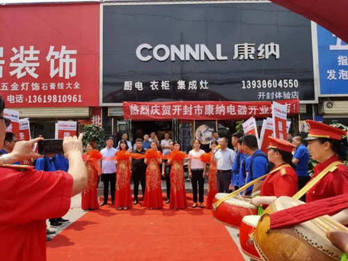 鑼鼓聲聲震九天,共慶生意紅如火。開(kāi)業(yè)活動(dòng)在精彩熱鬧的鼓樂(lè)隊(duì)中拉開(kāi)序幕,吸引眾多消費(fèi)者前來(lái)觀(guān)看。之后,康納開(kāi)封經(jīng)銷(xiāo)商陳登攀和嘉賓們共同剪彩,開(kāi)啟康納在開(kāi)封廚電市場(chǎng)的開(kāi)疆?dāng)U土。