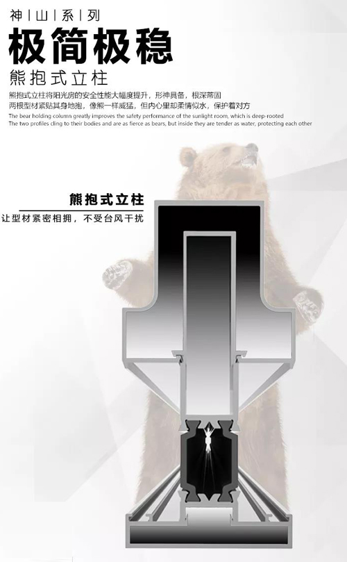 獨創(chuàng)的熊抱式立柱,將型材的安全性能提升數(shù)倍