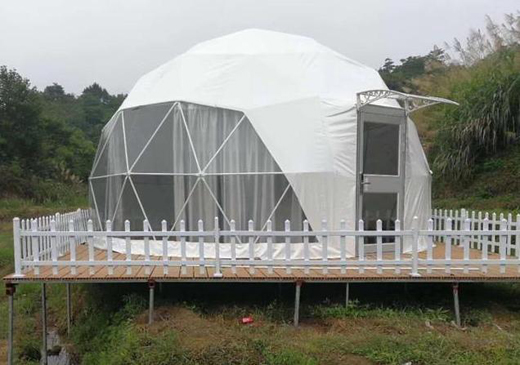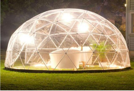 水晶屋使用的是鋼骨架和耐侯塑料膜,骨架搭以三角形,一是這樣的構(gòu)造更加的穩(wěn)因,二是為了做成切面形式,圓頂設(shè)計(jì)更加的時(shí)尚。它的材質(zhì)更是綠色環(huán)保,不會輕易的腐壞生銹,所以使用的壽命比較長。