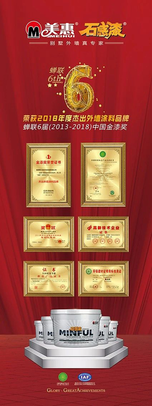 憑借良好的“美惠”品牌形象、優(yōu)異的產(chǎn)品質(zhì)量和優(yōu)質(zhì)扎實(shí)的客戶服務(wù)能力,“美惠”品牌不斷發(fā)展壯大,現(xiàn)擁有占地共十萬平方米的建筑涂料、防水涂料生產(chǎn)基地。生產(chǎn)基地采用歐洲先進(jìn)的自動化生產(chǎn)設(shè)備,產(chǎn)品銷量位居國內(nèi)前列,外墻涂料、防水涂料在同行業(yè)中處于優(yōu)先地位,并獲有“國家高新技術(shù)企業(yè)”、“ISO9001國際質(zhì)量體系認(rèn)證”、“中國環(huán)境標(biāo)志產(chǎn)品認(rèn)證”等多項(xiàng)殊榮。