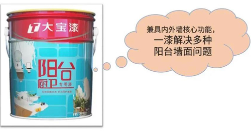 針對(duì)生活上常見的陽臺(tái)墻面問題,近日大寶漆研發(fā)生產(chǎn)了陽臺(tái)(廚衛(wèi))專用漆。據(jù)了解,該產(chǎn)品兼具內(nèi)外墻核心功能,一漆可以解決多種陽臺(tái)墻面問題。