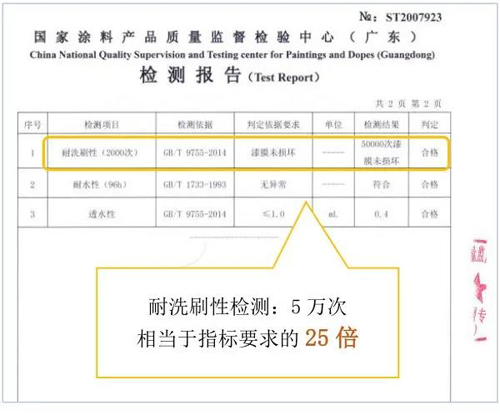 在防護(hù)耐用方面,大寶陽臺(tái)(廚衛(wèi))專用漆被國家涂料產(chǎn)品質(zhì)量監(jiān)督檢驗(yàn)中心(廣東)判定產(chǎn)品合格,檢測結(jié)果為:耐洗刷性檢測:5萬次,相當(dāng)于GB/T9755-2014國標(biāo)要求(2000次)的25倍。