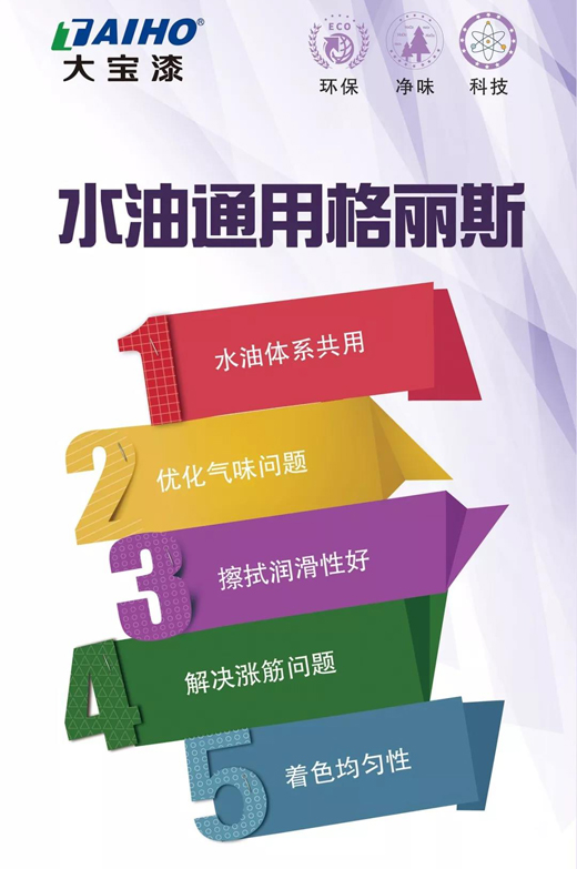 大寶十大品牌油漆憑借多年在家具漆領(lǐng)域的經(jīng)驗(yàn),通過(guò)分析格麗斯著色問(wèn)題產(chǎn)生的原因,不斷改進(jìn)產(chǎn)品,推出了一套水油通用的著色劑。該產(chǎn)品集油性格麗斯和水性格麗斯的優(yōu)勢(shì)。