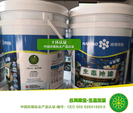養(yǎng)蝦池漆是養(yǎng)殖蝦苗業(yè)者對臺灣南寶生態(tài)池漆的稱呼,通過中國環(huán)境標(biāo)志產(chǎn)品認(rèn)證“十環(huán)認(rèn)證”,達(dá)到并通過國標(biāo)GB/T 17219-1998《生活飲用水輸配水設(shè)備及防護(hù)材料安全性評價標(biāo)準(zhǔn)》衛(wèi)生性能、毒理測試,評價為實際無毒級。