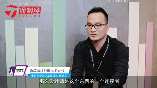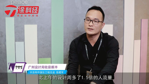 “2018年廣州設(shè)計(jì)周”期間,卡百利中國(guó)區(qū)工程總監(jiān)伍建軍接受了《涂料經(jīng)》的視頻專訪。