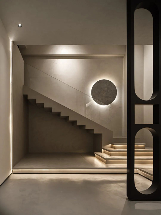 意大利這座藝術(shù)之都,隨著時(shí)空的變幻,為設(shè)計(jì)師的創(chuàng)作帶來(lái)了源源不絕的靈感。設(shè)計(jì)師希望到訪者經(jīng)由入口轉(zhuǎn)向室內(nèi)的角落,由外而內(nèi),循序漸進(jìn),有一種穿越時(shí)空的縱深感。由涂料繪制的一副「宇宙空間」,為空間增添純粹的美感,同時(shí)呈現(xiàn)出一種藝術(shù)與空間的精神內(nèi)核。