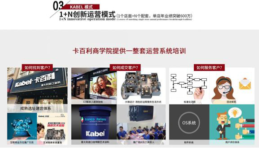 卡百利為解決80、90后的消費(fèi)者不愿意逛臟亂差的建材店,喜歡宅在家里上網(wǎng)選材料,或者到居然之家,紅星美凱龍等大型建材商場(chǎng)選購(gòu)等消費(fèi)者行為的痛點(diǎn),全面推行線上推廣,線下成交服務(wù)的新零售模式。通過騰訊系、百度系、阿里系、頭條系、新浪系、B2B等平臺(tái)全面推廣,將在線上預(yù)約的業(yè)主信息推送給線下經(jīng)銷商,由經(jīng)銷商成交、施工服務(wù),再有線上客服進(jìn)行售后回訪。線下,要求經(jīng)銷商在居然之家、紅星美凱龍及當(dāng)?shù)卮笮徒ú纳虉?chǎng)建立大面積旗艦店,另外,卡百利總結(jié)一套9大線下吸引客流的贏利模式,集中進(jìn)攻中高檔樓盤,達(dá)到雙線營(yíng)銷,一網(wǎng)打盡的閉環(huán)。