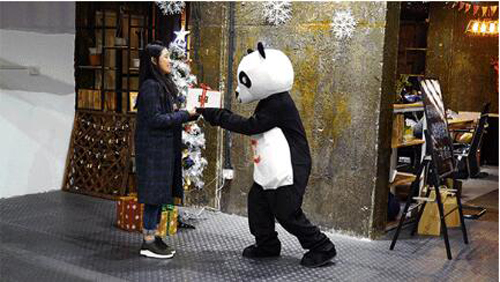 在配送時提供表演服務。由身穿熊貓服裝的配送員上門送蛋糕,現(xiàn)場進行2分鐘的舞蹈表演、魔術表演、互動游戲,祝你生日快樂。