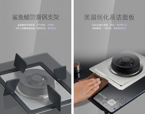 除了安裝風(fēng)格不受限制外,清潔更加人性化。索奇B812燃?xì)庠畈捎悯忯~鰭仿生防滑鍋支架,方形上抽搪瓷盛液盤,整體大氣穩(wěn)重、高檔,清潔更便捷,一抹即凈,告別油膩廚房。