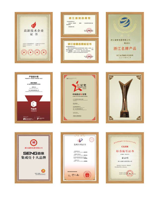 森歌是《集成灶標(biāo)準(zhǔn)CJ/T386-2012》的主要起草單位、《集成灶浙江制造標(biāo)準(zhǔn)》主要起草單位、《集成家裝產(chǎn)品售后安裝技術(shù)規(guī)范》行業(yè)標(biāo)準(zhǔn)的起草單位,擁有四項(xiàng)國(guó)家發(fā)明專(zhuān)利及80余項(xiàng)實(shí)用新型專(zhuān)利和外觀設(shè)計(jì)專(zhuān)利。A9集成灶更是行業(yè)唯一一款同時(shí)獲得金勾獎(jiǎng)、紅棉獎(jiǎng)、紅星獎(jiǎng)的集成灶。