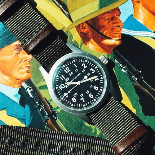 簡簡單單的一塊Field Watch,上手非常舒適、輕便,很多時候都感受不到表的存在。各廠原裝的NATO表帶質(zhì)量不是某寶可以比的,所以我一直建議有能力上品牌的NATO帶。這款表我上手不多,確是我最喜歡的表之一,軍表元素原汁原味,是軍迷的不二之遠。與之相對應的是漢米爾頓去年復刻的W10飛行員軍表。