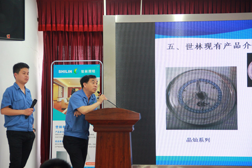 廣東世林照明有限公司總經(jīng)理謝兵、廣東世林照明有限公司家居事業(yè)部總監(jiān)李新才、廣東世林照明有限公司市場部總監(jiān)蔡林平、世林照明LED燈具工廠廠長蔣豐武、世林照明LED吸頂燈項(xiàng)目經(jīng)理岳平飛等領(lǐng)導(dǎo)及項(xiàng)目負(fù)責(zé)人為大家作了產(chǎn)品知識和市場政策培訓(xùn)講解。
