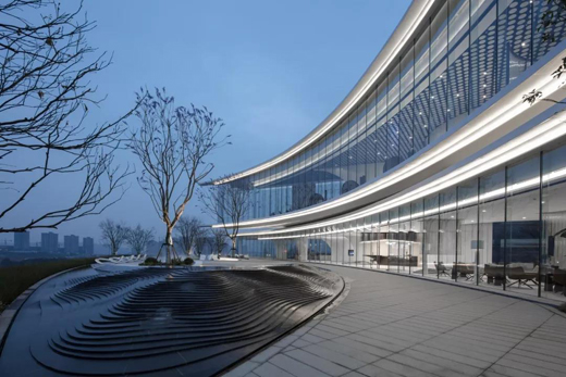 光,在夜間描繪建筑形態(tài),用簡潔的光在夜間塑造出一條空中灣流,猶如一輪新月懸掛在江灣之巔。