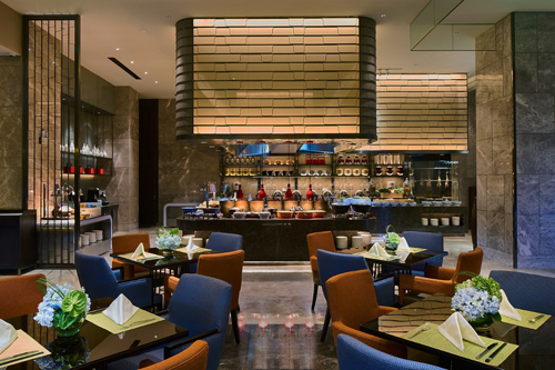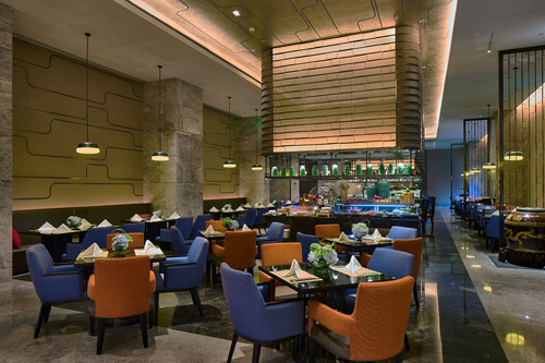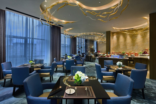 行政酒廊設(shè)計(jì)風(fēng)格為中西式結(jié)合,整體空間明亮高雅,暖色且富有層次的光將整個(gè)酒廊區(qū)域統(tǒng)一在極具舒適感的光環(huán)境中,天花燈槽、吊燈、立面裝飾的漫射光豐富了燈光層次。