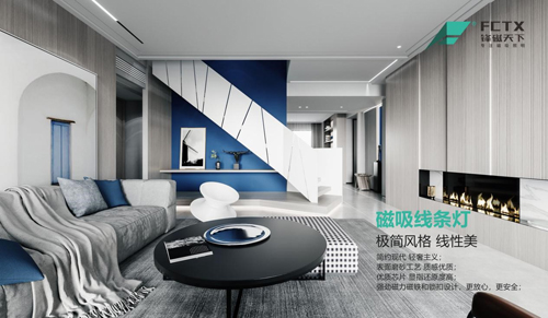 鋒磁天下磁吸燈款式多樣、結構簡單,外形美觀、安裝方便。其極簡的幾何設計,燈體可自由定制長度、隨意拼接,科技感與美感兼?zhèn)?無影連接設計,燈身渾然一體,能實現(xiàn)更加細膩的場景變化,高端美觀,簡約大方;燈體質感強,耐磨損,抗腐蝕。鋒磁天下磁吸燈以簡約線條為依托,通過對空間的創(chuàng)意設計、自由分割,構建出各種時尚簡約造型和光影效果,呈現(xiàn)視覺沖擊感。