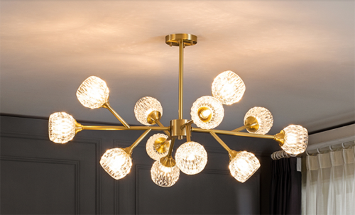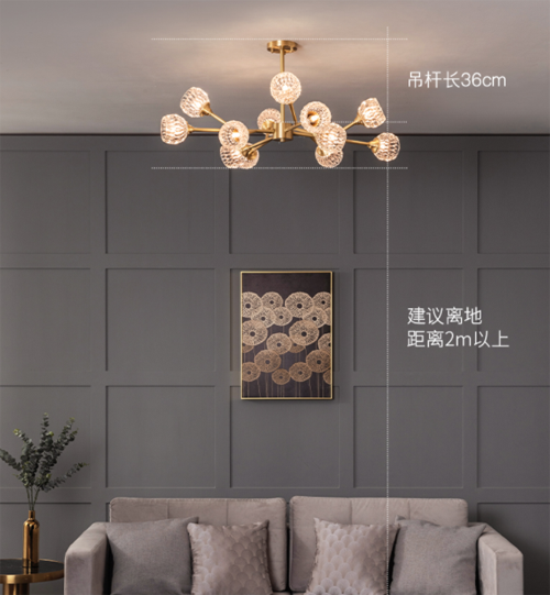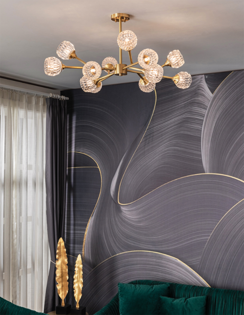 每個玻璃燈罩呈水晶花骨朵的造型,在開燈的瞬間,綻放璀璨耀眼的姿態(tài),瞬間提升空間的藝術感。