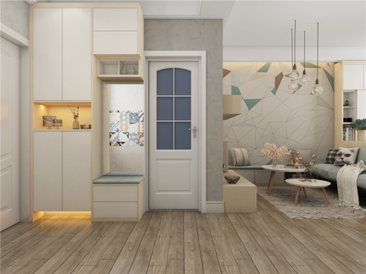 入戶面積非常有限,但到頂設計的入戶組合功能相當齊全,你可以想象得到周先生平日出門時換鞋、整裝等一氣呵成的干練姿態(tài)。