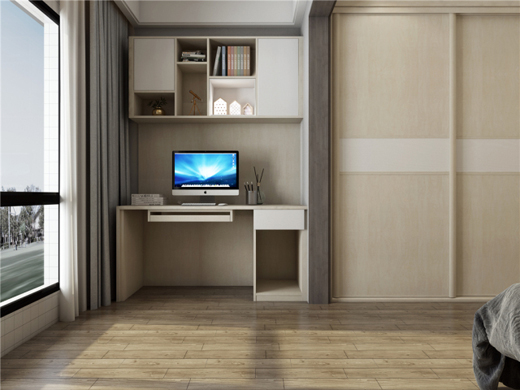此外,辦公區(qū)設在窗邊,便于在家辦公之余,還能隨時欣賞窗外風景,科學布局,勞逸結合。