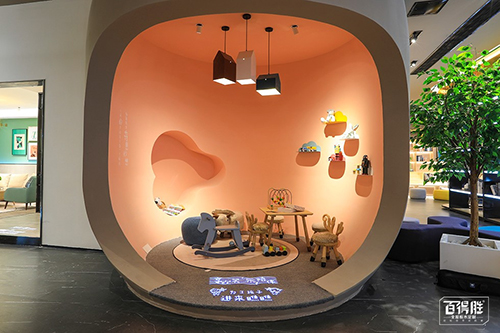 由于家具屬于低頻、低關注、高價格的耐用消費品,相比高頻消費的吃喝玩樂偏冷門,門店客流量天生不高。國際館引入咖啡吧、書吧、兒童親子玩樂區(qū)等不同生活場景,為用戶打造一個能夠身臨其境體驗和互動的“家”,讓用戶所見即所得。